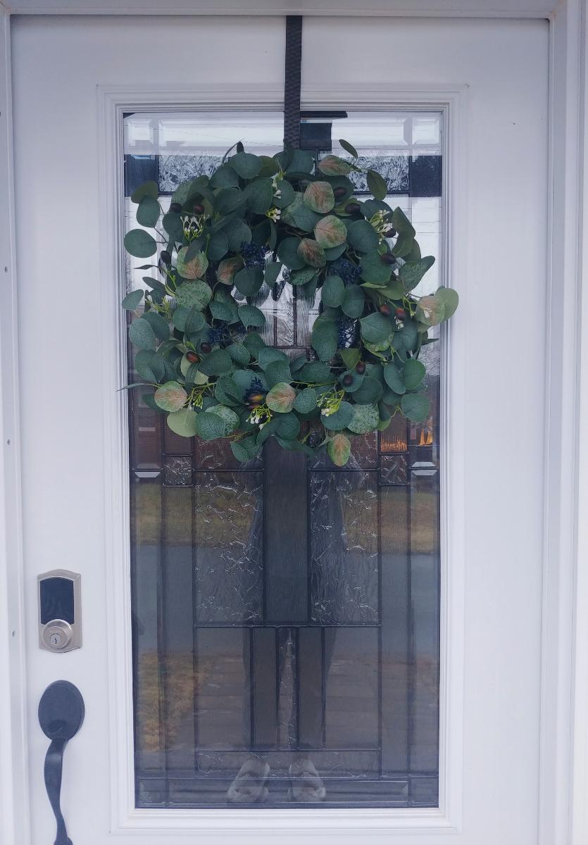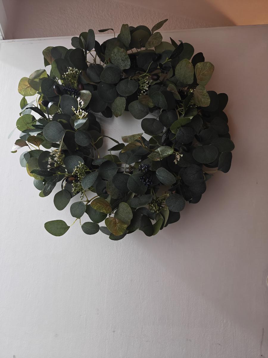 Elevate your home's curb appeal with this beautifully handcrafted 20-inch wreath, artfully combining eucalyptus, olive leaves, and decorative berries. The classic design brings a fresh, natural look to your front door, mantel, or any indoor wall. Built with premium plastic materials for lasting durability, this wreath is perfect for both indoor and outdoor use without any maintenance. Ideal for spring, summer, weddings, and holiday celebrations — a versatile piece that looks stunning all year long.