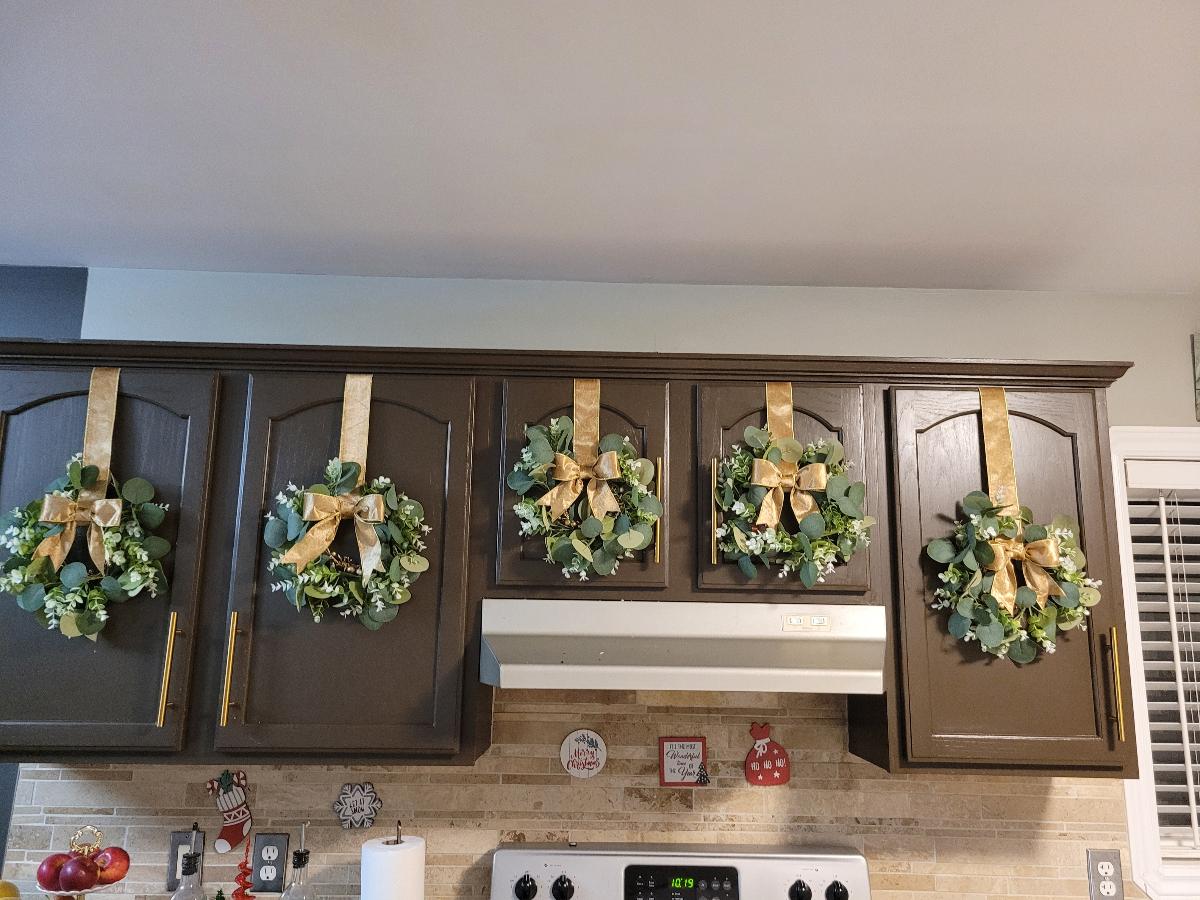 This set of 6 artificial eucalyptus leaf mini wreaths is perfect for American-style Christmas decorating. Use them on cabinet doors, as candle wreaths, or as tabletop centerpieces for Valentine's Day, Mother's Day, weddings and everyday home decor. Each wreath is made from durable plastic greenery with no feathers, no real plants and no electricity required. Designed for tabletop mounting and versatile seasonal styling. Candles not included.